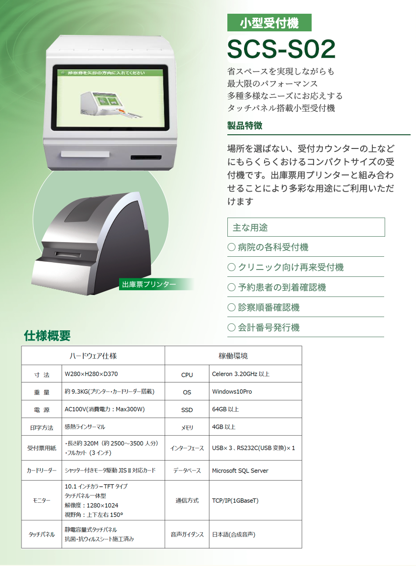 場所を選ばない、受付カウンターの上などにもらくらくおけるコンパクトサイズの受付機です。